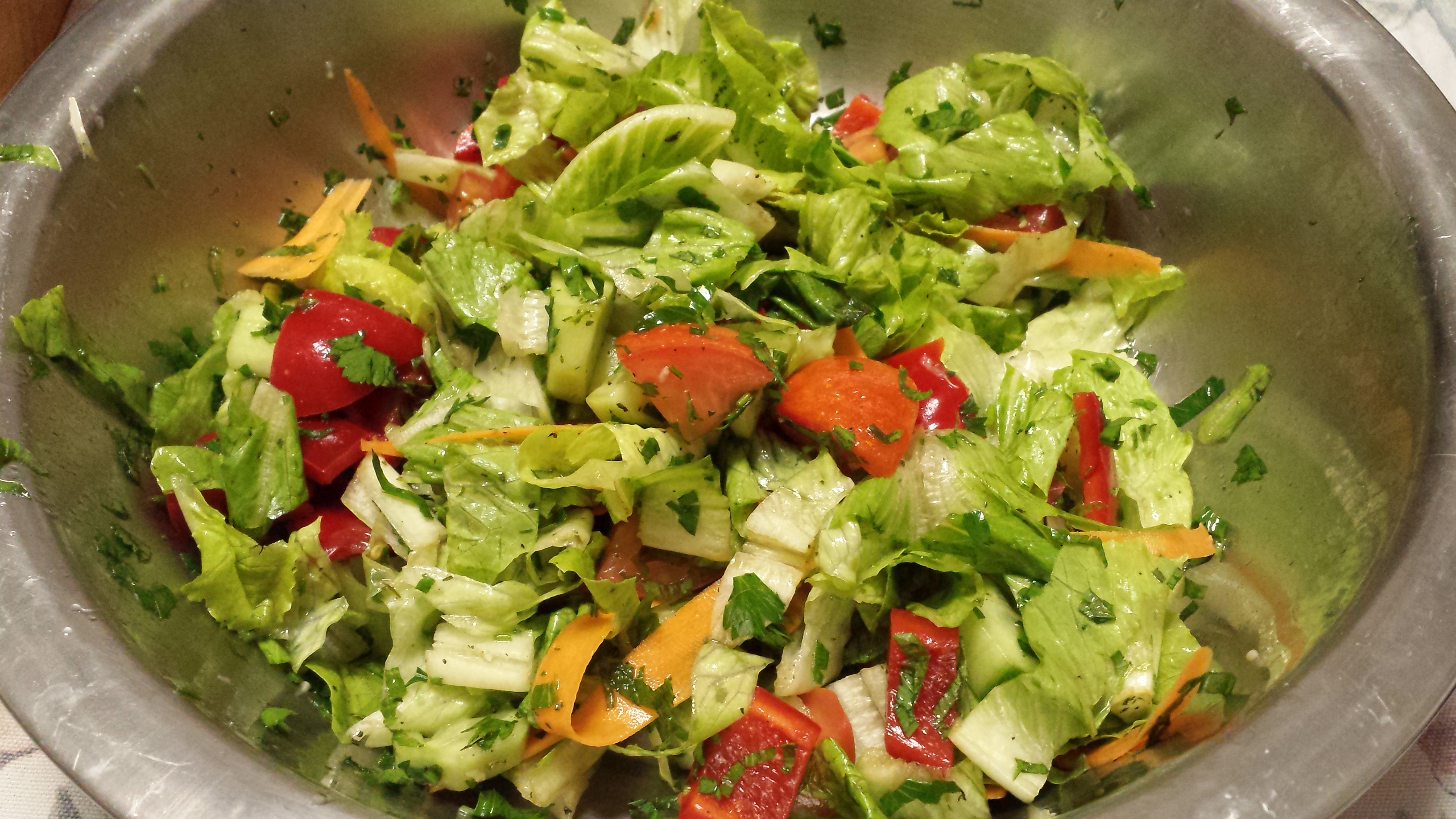 – Garden Salad with beef strips or tuna or chickpeas mixed through it.